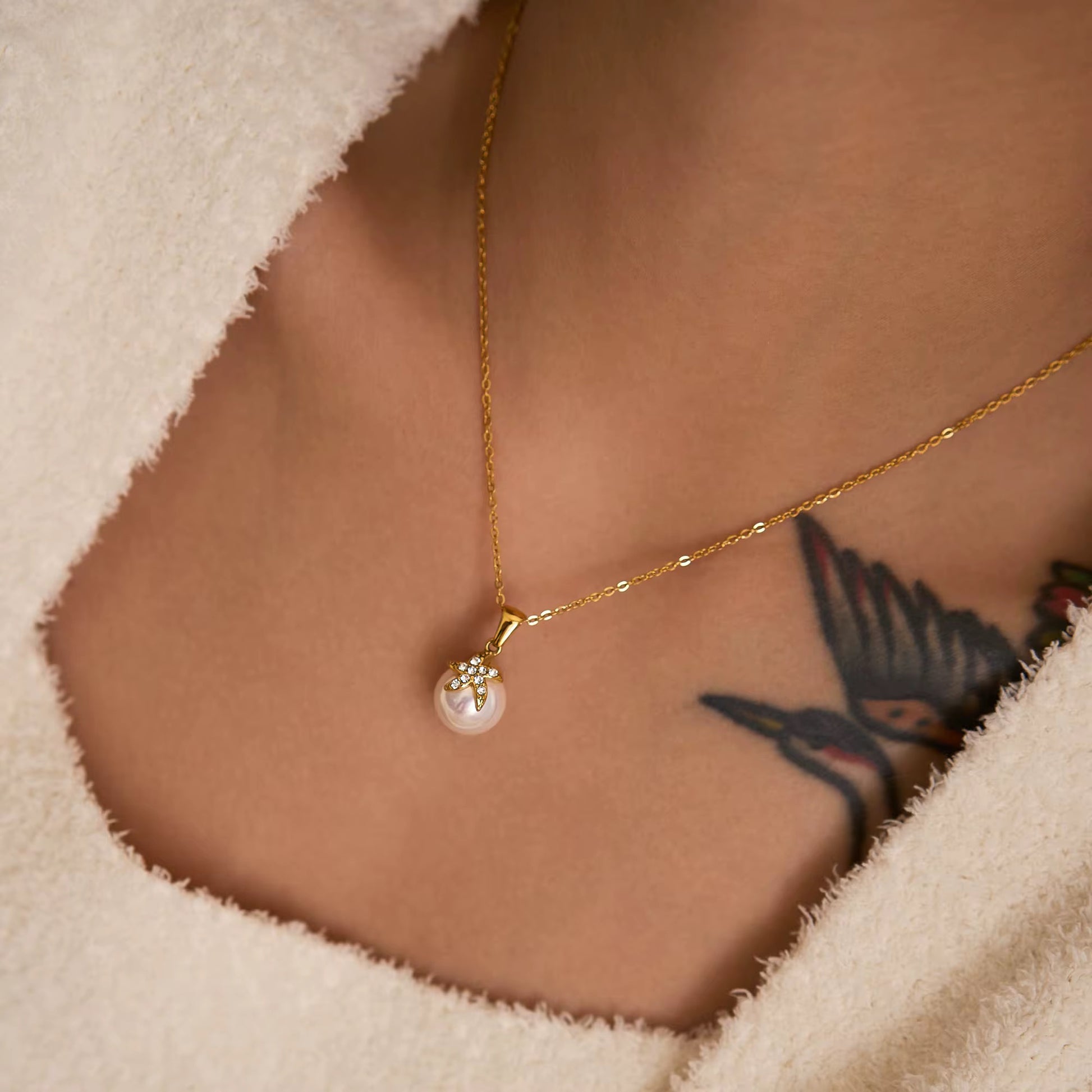 This baroque-style necklace for women is made from high-quality stainless steel plated with 18K gold. It is tarnish-free and water-proof, suitable for people with active lifestyles.