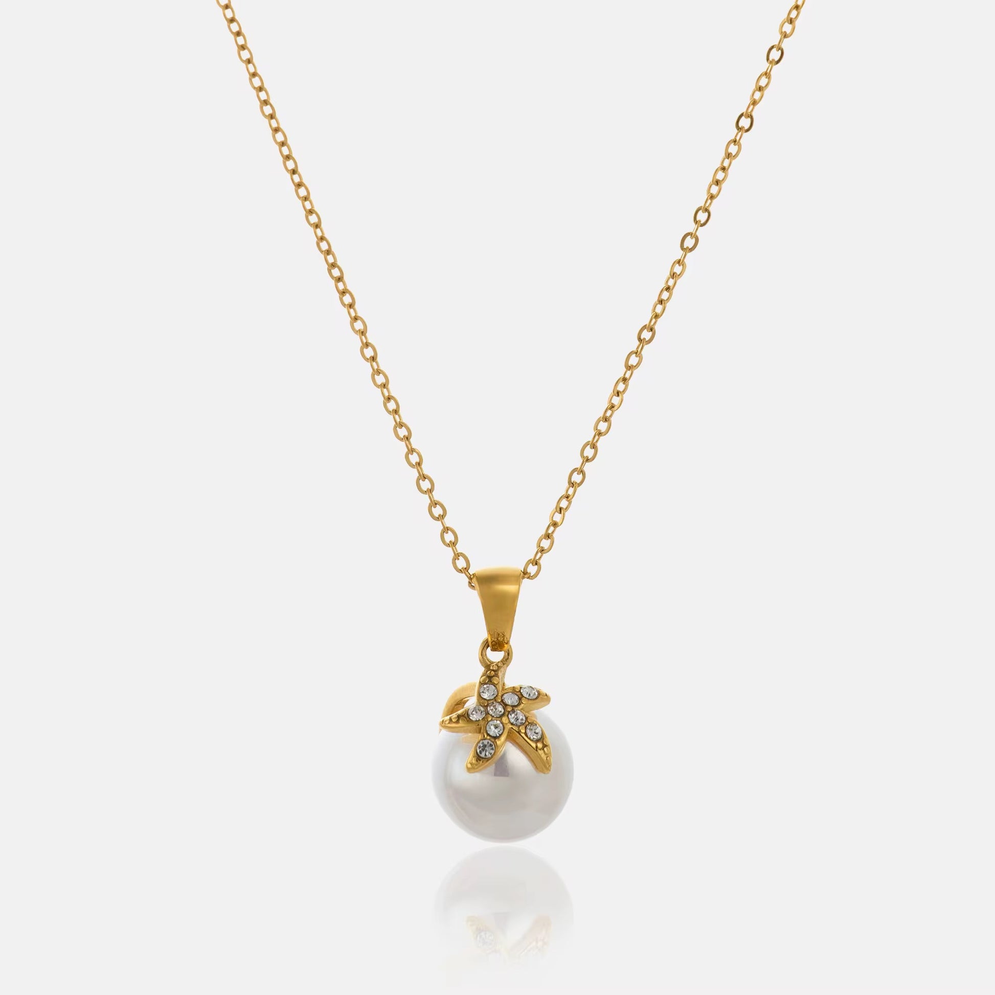 Gold Plated Stainless Steel Necklace - Baroque Pearl